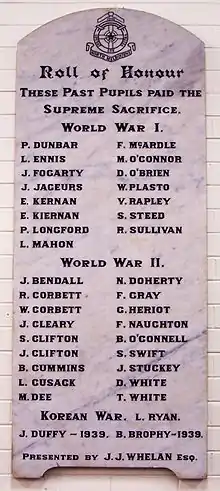 Between 1918 and 1941, students wishing to study for their Leaving Certificate had to do so at St. Kevin's College. By 1921 the enrolment stood at 174 and handball had become the leading sport and both public and school tournaments were frequently held on the handball court.[11]
