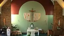 St Laurence's is a modern church, built in brick and with an open layout so that all parts of the church can see the altar area.