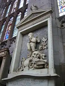 Ambrosia Sidney, (1565–1574), sister of Sir Philip Sidney and Mary Sidney who died at Ludlow Castle, aged nine, is buried near the altar under an impressive memorial bearing the arms of Sir Henry Sidney, (1530–1586), president of the Council of Wales and the Marches. His heart was brought from Worcester where he died and buried in a small leaden urn in an oratory near his daughter's tomb. The rest of his remains were buried with his wife Mary Dudley at Penhurst, Kent.