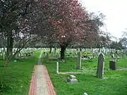 The church stands within a large churchyard containing monuments including chest tombs dating back to the 18th century, with 20th-century extensions to the north containing several war graves.[7] The churchyard is a pleasant area of trees, grass and wild flowers, carefully managed for its wildlife value.[2]