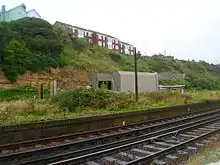 The station's stock fell after the 1921 grouping, although it retained a certain importance until the late 1950s as a locomotive depot.[3] Following electrification of the East Coastway line in 1935 by the Southern Railway, the service pattern introduced from May saw express trains from London Victoria call at all stations except West Marina.[28] Nevertheless, the station became the terminus for London services in November 1949 when it was necessary to close Bopeep Tunnel for repairs; buses ferried passengers from West Marina to St Leonards Warrior Square.[29][30] Normal services through the tunnel resumed on 5 June 1950.[29] Remarkably the now dilapidated station remained open to passengers until 10 July 1967,[7][23][20][31] the station's goods yard already having closed on 26 November 1962.[32] For several years after closure the station platforms remained available for use of railway staff requiring access to the depot.