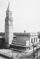Integral to this defensive network, an iron harbour chain that could be pulled taut across the Grand Canal to impede navigation and block access to the centre of the city was installed at the height of San Gregorio.[8][9] In addition, a massive watchtower was built in Saint Mark's Square. Probably begun during the reign of Tribuno, it was also intended to serve as a point of reference to guide Venetian ships safely into the harbour, which at that time occupied a substantial part of the area corresponding to the present-day piazzetta.[1][10][11][note 4]