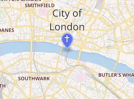 The church stood at what is now the junction of Queen Street and Upper Thames Street just north of Southwark Bridge.[2] It was rebuilt in 1306, the choir at the cost of Queen Margaret. The Vintners Company had an Altar in the church dedicated to St. Martin, who was their patron saint.[3]