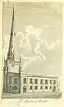 Drawing from William Hutton's 1809 book An history of Birmingham, showing the earlier church