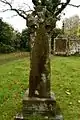 In the northeast corner of the churchyard is a hut or shed that has been constructed from left-over stones, including 13th-century grave-covers, pieces of stone carved with zigzags, and a corbel. The structure is listed at Grade II.[9] Also in the churchyard are three tombstones bearing dates between 1711 and 1729, each of which has been listed at Grade II.[10][11][12]