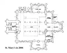 St Mary's parish church in Hinckley was dedicated in the Middle Ages to the Assumption of Saint Mary the Virgin. This church building has stood on the site for almost nine hundred years, although there may well have been a church already on the site, as the remnants of an Anglo Saxon sun-dial is visible on the diagonal buttress on the south-east corner of the chancel.[3] The church was built by William FitzOsbern, who came over with William the Conqueror.