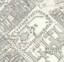 In 1925 the church was closed pending demolition for the expansion of Birmingham General Hospital. The parish was united with that of Bishop Ryder Church.[2] The proceeds of the sale went to build St Mary's Church, at Pype Hayes.