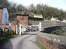 St Mary's Crossing is a minor level crossing for an access road between Brimscombe and Chalford. The halt was built immediately east of this crossing and was situated at the western end of the St Mary's viaduct which carried the line over the Thames and Severn Canal. The halt featured two wooden platforms, GWR pagoda style shelters, and uniquely for the halts in the Stroud Valley, a metal footbridge, which was provided after a young lady was killed crossing the line. On the other side of the level crossing on the down side was the St Mary's Crossing signal box.