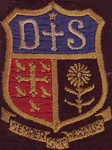 - The original school badge: The upper-half is from the logo of the Brotherhood – Deus Solus/God Alone. The left quartering is from the arms of Edward the Confessor and was used for the English schools of the Brotherhood. The right quartering is the emblem for the school, being a gold (French?) marigold on a dark brown field.