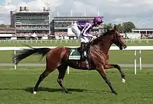 As a yearling, he was consigned by the Oaks Farm Stud to the Tattersalls sales in October 2008 where he was bought for 200,000 guineas by the bloodstock agent Demi O'Byrne on behalf of John Magnier's Coolmore organisation.[6] Like many Coolmore horse's, the details of St Nicholas Abbey's ownership have altered from race to race: he has been officially "owned" by various combinations and individuals including Derrick Smith, Susan Magnier and Michael Tabor.[7] He has been trained throughout his racing career by Aidan O'Brien at Ballydoyle. He is named after a Jacobean plantation house in Barbados.[8] He is often referred to as "St Nick".[9]