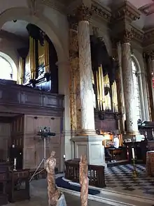 The organ, originally built by Thomas Swarbrick, still dates in part from 1715. It underwent repairs during the late 19th century and was moved from its original position in the gallery. It has been restored, enlarged and modernised several times, most recently by Nicholson's in 1993.[2] Details of the organ can be found at the National Pipe Organ Register.[12]