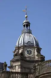 St Philip's Church was planned when the nearby medieval church of St Martin in the Bull Ring became insufficient to house its congregation because of the growing population of Birmingham. The land, previously named the Barley Close, was donated by Robert Philips in 1710. It is one of the highest points in the district and is said to be at the same level as the cross on St Paul's Cathedral in London.[1] Following an Act of Parliament, construction commenced in 1711, to the design of Thomas Archer,[2] and was ready for consecration in 1715, when it was dedicated to the Apostle Philip as a tribute to the benefactor Robert Philips. It appears to have been Archer's first church, apart from a rebuilt chancel at Chicheley attributed to him. Construction was estimated to cost £20,000, but the final figure was only £5,012.[2] (equivalent to £790,000 in 2019).[3] This was because many of the materials were donated and transported to the site at no cost. St Philip's served as a Parish church from 1715 to 1905.