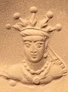 The design with two facing busts is also visible in some of the coinage of the period, althoug the small space of the coins seems to have forced to two busts to come closer together.[3] It has been suggested that this design was influenced by some Byzantine coins,[4] but this may not be necessarily so.[3]