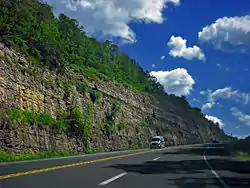 ![]() The construction of U.S. Route 6 exposed geologic layers in Standing Stone Township. | |