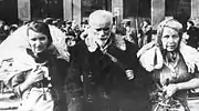 Wojciechowski with his wife Maria Kiersnowska (right) in Durchgangslager 121 in Pruszków, after being expelled from Warsaw at the end of the Warsaw Uprising (October 1944).