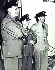 Prime Minister Robert Menzies had in any case been looking for a British officer to head the RAAF and confided to the UK High Commissioner, Sir Geoffrey Whiskard, that Goble's resignation was "undoubtedly very convenient".[44] Following the interim appointment of Air Commodore Anderson, the Royal Air Force's Air Chief Marshal Sir Charles Burnett became Chief of the Air Staff; among other things, Burnett proceeded to reorganise the Air Force into a geographically based "area" system of command and control.[35][45] Goble had offered to submit his resignation from the RAAF as well as from the position of CAS, and was considering a return to Britain for service with the RAF. Menzies persuaded him to remain and take on the role of Australian Air Liaison Officer to Canada, based in Ottawa.[35][43] Raised to substantive air vice marshal, Goble stayed at this post for the duration of the war and was the RAAF's representative at the Ottawa Conference in May–June 1942 that negotiated the Joint Commonwealth Air Training Plan.[46][47]