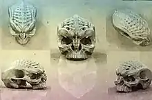 They first designed a generic, realistic Klingon skull,[72][73] based on real biology.[71] The different Klingons were developed from that base in a "practical evolutionary" way.[73] The skull design assumed that the Klingons are "an apex predator" and have heightened senses, "specifically extra sensory receptors running from the top of their heads to their backs." Page explained that because of this, it made more sense for the Klingons to be bald "because of these heightened senses on the top of their heads." He added that the Klingons being bald was mandated by Fuller.[72] Different designs for the Klingons' clothing, weapons, and armor were then created for the 24 different Klingon houses.[39][74] It was important to the producers to show diversity within the Klingons as well, so the series depicts both light and dark skinned members of the species.[71] Elaborating on the differences between the houses, Glenn Hetrick, co-founder of Alchemy Studios with Page, stated that the Klingon Empire covers many planets beyond the homeworld of Qo'noS and so different subsets of the species would have evolved on those different planets, each with different environments and cultures.[72]