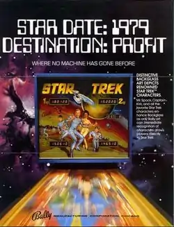 Star Trek is a 1979 pinball game developed by Bally. It was the first pinball machine based on the franchise of the same name. A second pinball machine of the same name was released in 1991 by Data East.