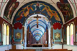 The Star of the Sea Painted Church in Kalapana, Hawai'i was built in 1927-1928 under the direction of the Belgian Catholic missionary priest Father Evarist Gielen, who painted the upper section of the church interior.
