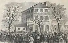 Star of the West was an American civilian steamship that was launched in 1852 and scuttled by Confederate forces in 1863. In January 1861, the ship was hired by the government of the United States to transport military supplies and reinforcements to the U.S. military garrison of Fort Sumter. A battery on Morris Island, South Carolina manned by cadets from the South Carolina Military Academy (now The Citadel) fired upon the ship, effectively the first shots fired in the American Civil War.[1][2]