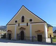 The parish church in the settlement is dedicated to Saint George and belongs to the Ljubljana Archdiocese.[6] The parish was created in the second half of the 12th century, and the church was first mentioned in written documents dating to 1221. The original church was rebuilt and expanded on a number of occasions. Frescos from the early 16th century are preserved in the current building and the existing sanctuary was added in 1643.[7]