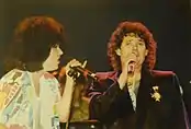 ![]() Jefferson Starship onstage at Great America, June 23, 1984, shortly before they became Starship (l-to-r Grace Slick, Mickey Thomas, Pete Sears, Paul Kantner, Craig Chaquico, Donny Baldwin, and David Freiberg) | |
