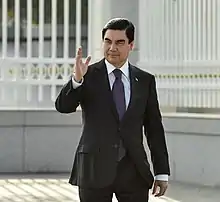 According to the 1995 Law on defence, the council is chaired by the President of Turkmenistan, who can define the powers and actions of the Security Council.[2] The Security Council was first mentioned in the 2003 Constitution of Turkmenistan, with it noting that in the president's role as supreme commander-in-chief, he/she can convene sessions of the council, as well dismiss and promote members of the council. It was originally led by President Saparmurat Niyazov until his death in 2006. During this time Major General Agageldi Mammetgeldiyev acted as the council's secretary.[3] Following the death of Niyazov, Gurbanguly Berdimuhamedow acted as his successor.[4][5][6] The current secretary of the council is Charymyrat Amanov.[7]