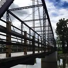 The bridge was completed later that year, and served as the only access to Bridgeport from the south until 1958, when a new bridge was constructed to the south. The bridge was abandoned by Saginaw County in 1969 and reverted to Bridgeport Township. It was closed to highway traffic in about 1972 and converted to pedestrian use.[2] By the 2000s, the bridge had deteriorated, and one support pier was in danger of collapsing. In 2010, the bridge was dismantled and completely restored, with the piers replaced, for continued use as a pedestrian bridge.[3]