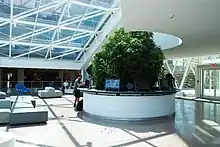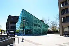 At the center of campus is the Samuel Dorsky Museum of Art, which opened in 2001. With more than 9,000 square feet of exhibition space in six galleries, the Dorsky is one of the largest art museums in the SUNY system.[22] The East Wing includes the Morgan Anderson Gallery, Howard Greenberg Family Gallery, Sara Bedrick Gallery, and the Corridor Gallery, and the West Wing includes the Alice and Horace Chandler Gallery and the North Gallery. The Dorsky's permanent collection comprises more than 5,000 works of American Art (with emphasis on the Hudson Valley and Catskill Regions), 19th, 20th and 21st century photography, metals, and a "world collection" of art and artifacts dating back to ancient times and representing diverse cultures. Through its collections, exhibitions, and public programs, the Dorsky supports and enriches the academic programs at the college, presents a broad range of world art for study and enjoyment, and serves as a center for Hudson Valley arts and culture.[23] In addition to providing outstanding instruction space for students and Hudson Valley schoolchildren, the SDMA allows New Paltz community members to regularly display their artwork. The Dorsky's facilities include research and seminar rooms for visitors, students and professors at SUNY New Paltz.