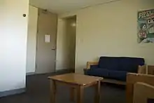 Purchase college consists of six dormitory halls, Crossroads, Big Haus, Farside, Outback, Fort Awesome, and Wayback; along with three apartment complexes, The Olde, The Commons (The Neu), and Alumni Village. Crossroads, Farside, and parts of Big Haus house first year students and the staff in the building, one professional Residence Coordinator (RC) and two Residence Assistants (RA's) per floor, are accommodated towards offering first year students help.[72][73][74] The other parts of Big Haus along with Outback, Fort Awesome, Wayback, and the apartment complexes are upperclassmen housing and the selection process of these buildings are determined by the amount of credits one has.[75][76][77][78][79][80] Outback residence hall is also a part of the wellness program housing the school provides which according to its page on the Purchase website "houses students committed to holistic health and wellness. Staff and residents develop programs that focus specifically on areas of Wellness including Physical, Intellectual, Vocational/Occupational, Emotional, Social (Cultural, Societal, Family, Community), Environmental and Spiritual."[81]