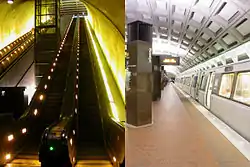 A key scene in which a character is struck by a train takes place on the Washington Metro. Filming for the scene took place at the Rosslyn Metro station in Virginia. The Rosslyn station was chosen because it was the only station in the Metro system to have a long escalator leading to a platform, with trains passing at the same times on upper and lower levels.[13] Filming also took place at night aboard two railcars at the Forest Glen Metro station in Maryland.[13][60]