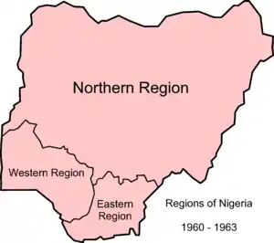 | 1960-1963 | At the time of independence in 1960, Nigeria was a Federal State of three Regions: Northern, Western, and Eastern. Additionally, provinces, which were a legacy of colonial and protectorate times, remained extant until they were abolished in 1976. | ![]() |