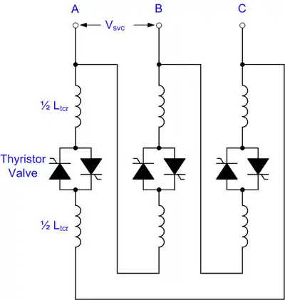 - Thyristor controlled reactor (TCR), where the reactor may be air- or iron-cored