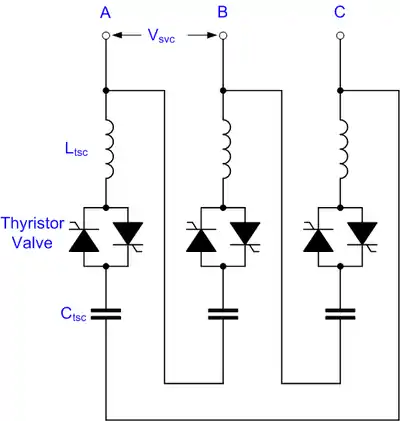 By means of phase angle modulation switched by the thyristors, the reactor may be variably switched into the circuit and so provide a continuously variable VAR injection (or absorption) to the electrical network.[2] In this configuration, coarse voltage control is provided by the capacitors; the thyristor-controlled reactor is to provide smooth control. Smoother control and more flexibility can be provided with thyristor-controlled capacitor switching.[7]