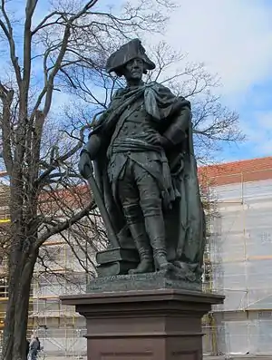 The statue of Frederick the Great is installed outside Charlottenburg Palace in Berlin, Germany.