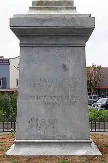 ![]() The statue of President William McKinley on the Plaza in Arcata, California, prior to its removal on February 28, 2019. | |