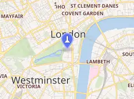 The statue of the Earl Kitchener is an outdoor bronze statue by John Tweed depicting Herbert Kitchener, 1st Earl Kitchener, installed in 1926 and located on the south side of Horse Guards Parade in London, United Kingdom.[1] The sculpture stands on a Portland stone plinth. It contains the following inscription: KITCHENER/ 1850–1916/ ERECTED BY PARLIAMENT.[2]