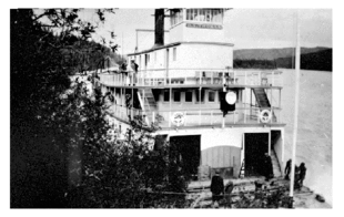 The first motorized vessel on the Peace system was the SS Grahame, built by the Hudson's Bay Company in Fort Chipewyan in the winter of 1882–83.[1] She carried freight 200 miles (320 km) up the Peace to Vermilion Chutes, where the company's goods were portaged around the rapids and reloaded into a flotilla of scows and canoes for the journey onward."