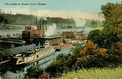 Locks were completed at Willamette Falls in 1873.[1] This eliminated the need for the portage at Willamette Falls and established an "open river" all the way south to Eugene, although the water was so shallow by that point that few boats ever made it so far.