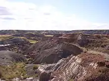 The Dinosaur Park Formation is interpreted as a low-relief setting of rivers and floodplains that became more swampy and influenced by marine conditions over time as the Western Interior Seaway transgressed westward.[53] The climate was warmer than present-day Alberta, without frost, but with wetter and drier seasons. Conifers were apparently the dominant canopy plants, with an understory of ferns, tree ferns, and angiosperms.[54] Dinosaur Park is known for its diverse community of herbivores. As well as Stegoceras, the formation has also yielded fossils of the ceratopsians Centrosaurus, Styracosaurus and Chasmosaurus, the hadrosaurids Prosaurolophus, Lambeosaurus, Gryposaurus, Corythosaurus, and Parasaurolophus, and the ankylosaurs Edmontonia and Euoplocephalus. Theropods present include the tyrannosaurids Gorgosaurus and Daspletosaurus.[55] Other dinosaurs known from the Oldman Formation include the hadrosaur Brachylophosaurus, the ceratopsians Coronosaurus and Albertaceratops, ornithomimids, therizinosaurs and possibly ankylosaurs. Theropods included troodontids, oviraptorosaurs, the dromaeosaurid Saurornitholestes and possibly an albertosaurine tyrannosaur.[56]