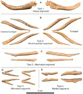 The vertebral column of Stegoceras is incompletely known. The articulation between the zygagophyses (articular processes) of successive dorsal (back) vertebrae appears to have prevented sideways movement of the vertebral column, which made it very rigid, and it was further strengthened by ossified tendons.[3] Though the neck vertebrae are not known, the downturned occipital condyle (which articulates with the first neck vertebra) indicates that the neck was held in a curved posture, like the "S"- or "U"-shape of most dinosaur necks.[32] Based on their position in Homalocephale, the ossified tendons found with UALVP 2 would have formed an intricate "caudal basket" in the tail, consisting of parallel rows, with the extremities of each tendon contacting the next successively. Such structures are called myorhabdoi, and are otherwise only known in teleost fish; the feature is unique to pachycephalosaurs among tetrapod (four-limbed) animals, and may have functioned in stiffening the tail.[9]