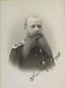 Stepan Osipovich Makarov (Russian: Степа́н О́сипович Мака́ров; 8 January 1849 [O.S. 27 December 1848] – 13 April [O.S. 31 March] 1904) was a Russian vice-admiral, commander in the Imperial Russian Navy, oceanographer, member of the Russian Academy of Sciences, and author of several books. He was a pioneer of insubmersibility theory (the concept of counter-flooding to stabilise a damaged ship), and developer of a Cyrillic-based semaphore alphabet. A proponent of icebreaker use, he supervised the first ever polar icebreaker construction. Makarov also designed several ships.