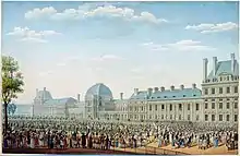 Du Buisson then returned to France, where he resided in an apartment in the royal Tuileries Palace in Paris, serving as the cashier-comptroller of the crown from December 1814 to June 1815. During this time, he befriended Baron François Roullet de La Bouillerie, a member of the Conseil d'État and the intendant of the treasury of the civil list.[2] Du Buisson retained his employment in the civil service through the abdication of Napoleon and the restoration of Louis XVIII as King of France, which allowed him to support his family members. During this time, he would pay visits to the sick in Parisian hospitals alongside young nobles, including Viscount Mathieu de Montmorency and Count Alexis de Noailles. He also undertook independent study and learned to play the violin.[8]