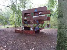 In 2011, the artist presented a set of large free standing sculptures in a public square in Lisbon, Portugal. One of the pieces presented was a large painted metal structure made up of individually stacked monoliths. This piece was later exhibited in a sculpture garden in the Netherlands. As part of this exhibition the artist encouraged visitors to deface the sculpture with their own graffiti.