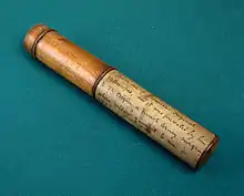 The stethoscope was invented in France in 1816 by René Laennec at the Necker-Enfants Malades Hospital in Paris.[1][2][3] It consisted of a wooden tube and was monaural. Laennec invented the stethoscope because he was not comfortable placing his ear directly onto a woman's chest to listen to her heart.[4][5]:186 He observed that a rolled piece of paper, placed between the patient's chest and his ear, could amplify heart sounds without requiring physical contact.[6] Laennec's device was similar to the common ear trumpet, a historical form of hearing aid; indeed, his invention was almost indistinguishable in structure and function from the trumpet, which was commonly called a "microphone". Laennec called his device the "stethoscope"[7] (stetho- + -scope, "chest scope"), and he called its use "mediate auscultation", because it was auscultation with a tool intermediate between the patient's body and the physician's ear. (Today the word auscultation denotes all such listening, mediate or not.) The first flexible stethoscope of any sort may have been a binaural instrument with articulated joints not very clearly described in 1829.[8] In 1840, Golding Bird described a stethoscope he had been using with a flexible tube. Bird was the first to publish a description of such a stethoscope, but he noted in his paper the prior existence of an earlier design (which he thought was of little utility) which he described as the snake ear trumpet. Bird's stethoscope had a single earpiece.[9]