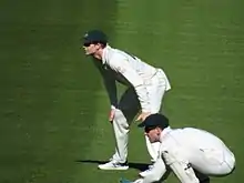 In the World Cup, Smith played a vital role as versatile batsman as he played in numerous batting positions from number three down to as a middle-order batsman. In Australia's opening match of the World Cup, against England, he was dismissed early on 5 but later improved as the tournament progressed. After making half centuries against Afghanistan, Sri Lanka and Pakistan, he later steered Australia into the final after making a century against India in the semi-finals at the Sydney Cricket Ground.[124] In the final, Australia drew against fellow neighbours New Zealand after defeating South Africa. Australia's target to chase 183 runs after a New Zealand collapse saw Steve Smith score 58 not out alongside the skipper, Michael Clarke as Australia won by 7 wickets with 101 balls remaining.[125] Smith was Australia's highest run scorer in the tournament, scoring 402 runs at an average of 67, including a century and four fifties.[126] He was named in the team of the tournament for the 2015 World Cup by the ICC.[127] He was also named in the team of the tournament by ESPNcricinfo and Cricbuzz.[128][129]