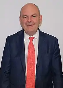 During the 2017 election, Joyce stood on the National Party list and was re-elected.[28] National won 44% of the popular vote and 56 seats; maintaining its plurality in the New Zealand House of Representatives.[29] However, National fell short of the majority needed to govern alone. Following post-election negotiations, Labour formed a coalition government with the opposition New Zealand First and Green parties.[30][31]