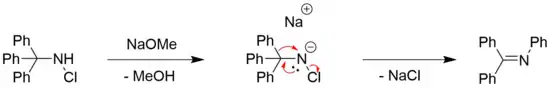 The Stieglitz rearrangement of N-halogenated amines can be observed for chlorine[7] and bromine[8] substituted amines, often in combination with an organic base, such as sodium methoxide.[4] The need for a base is generally affiliated with the need for a deprotonation of the amine.[4]