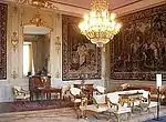 During the reign of King Oscar I, there was a renewed interest for older styles and when the Vita Havet (the White Sea Ballroom) was created from the designs of Per Axel Nyström in 1844–1850, a compromise between old and new was made. Fredrik Wilhelm Scholander was the royal curator of King Charles XV and shared his taste in interior design, this resulted in rooms like the Victoriasalongen (the Victoria Drawing room) in a lush revived Rococo style.[39]