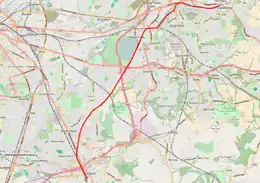 Congestion around Guide Bridge led to the LNWR building a new line to avoid Guide Bridge station. Known as the Stalybridge Junction Railway, it ran from Denton Junction, then under the MS&LR main line east of Guide Bridge, and then ran parallel to the existing Guide Bridge-Stalybridge line, before joining the main line again just west of Stalybridge station. As well as relieving congestion, it also had the advantage of allowing LNWR trains to bypass MS&LR tracks altogether. The line was completed in 1893, with stations at Hooley Hill and Dukinfield and Ashton. A local Stockport-Stalybridge passenger service ran on this line until 25 September 1950. The line was closed completely in 1968 and was dismantled in the early 1970s. As it ran mostly on brick viaducts, which have since been demolished, little physical trace now remains of the line.[4][5]